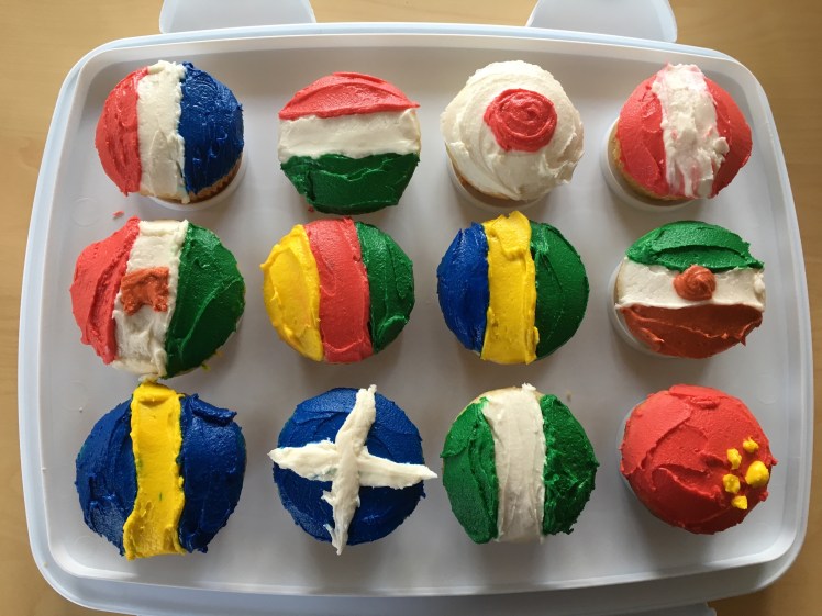 Ce soir, ma fille organise une soirée Meurtre et mystère. Hier, elle a fait des petits gâteaux pour servir à ses amis. J’allais au lit quand elle a commencé à les décorer. Comme le thème se passe dans un aéroport, on avait fait une tempête d’idées pour décider qu’elle les décorerait avec des étiquettes de codes d’aéroport. Ce matin, j’ai trouvé cette œuvre d’art sur le comptoir.