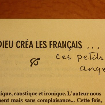 En faisant le ménage de mon ordinateur (oui, je sais, je suis la seule personne au monde à faire ça), j’ai retrouvé un vieux document. À l’époque, ma mère nous avait offert, à mon mari et moi, le livre Et Dieu créa les Français… de Louis-Bernard Robitaille. Je ne me souviens pas l’avoir lu, mais … Lire la suite Et Dieu créa les amis…